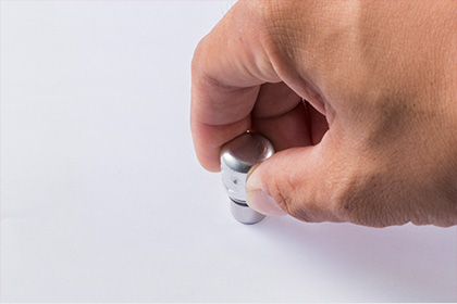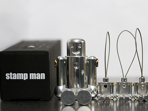 アルミ素材のスタンプマンは素材自体が柔らかい金属なので、鋭利で堅い物にぶつかるとへこんだり、キズがついたりしますので、ご注意ください。
