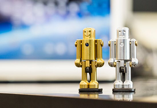 高い技術を持った職人達が、遊び心を交えて削り出したロボット達は、